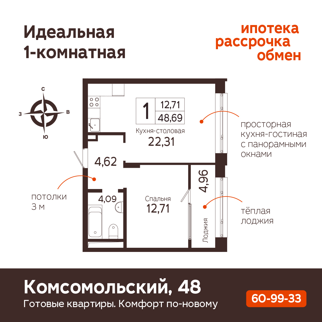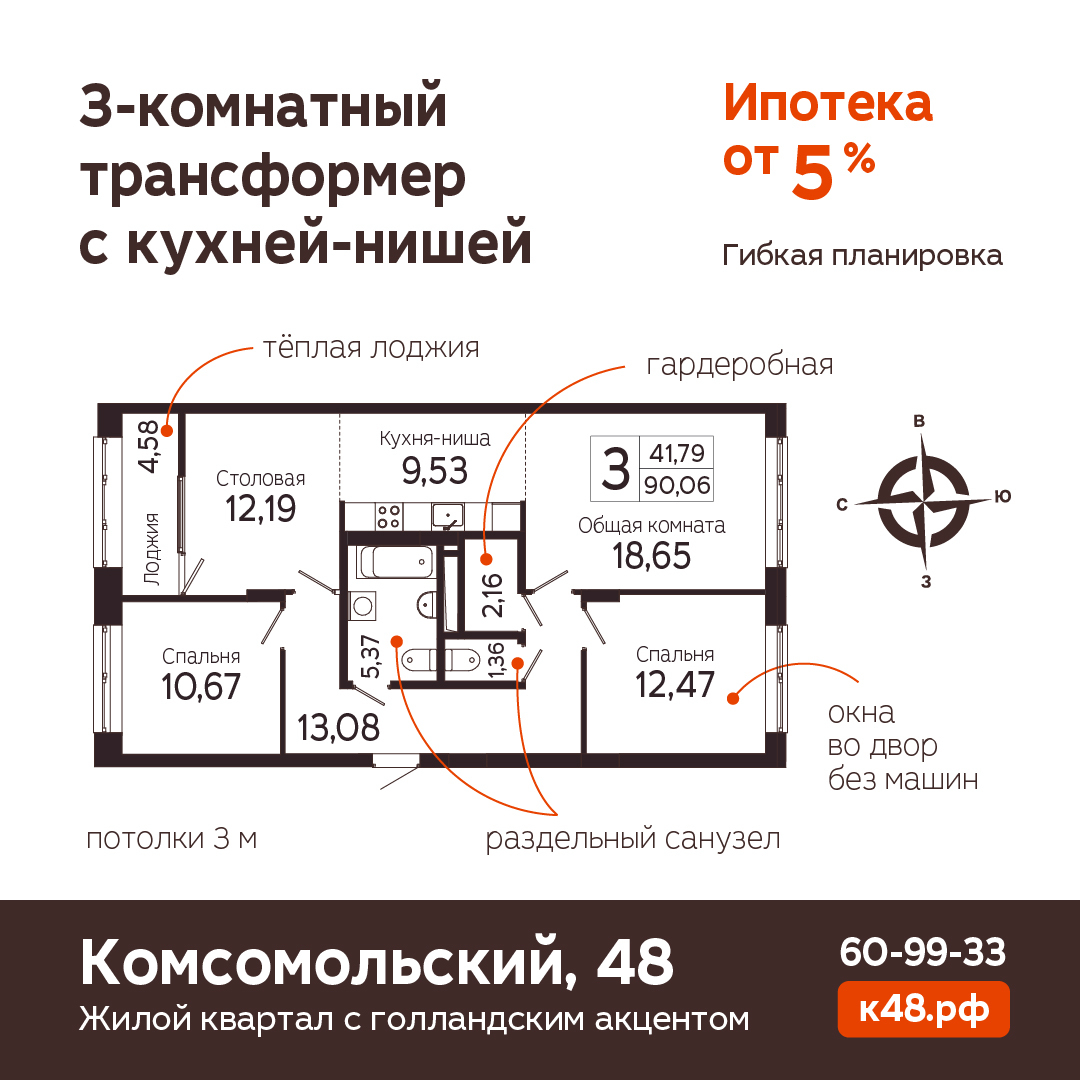 До 10 декабря большие квартиры на Комсомольском, 48 на самых выгодных условиях*.